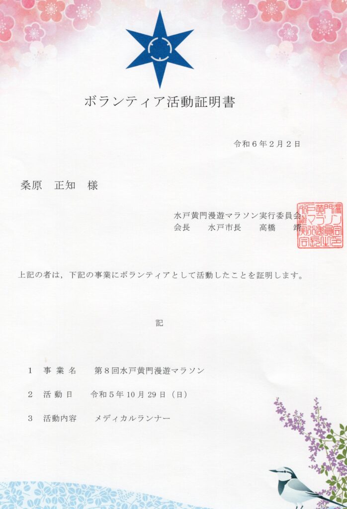 各地のマラソン大会でメディカルランナーとして参加しています。